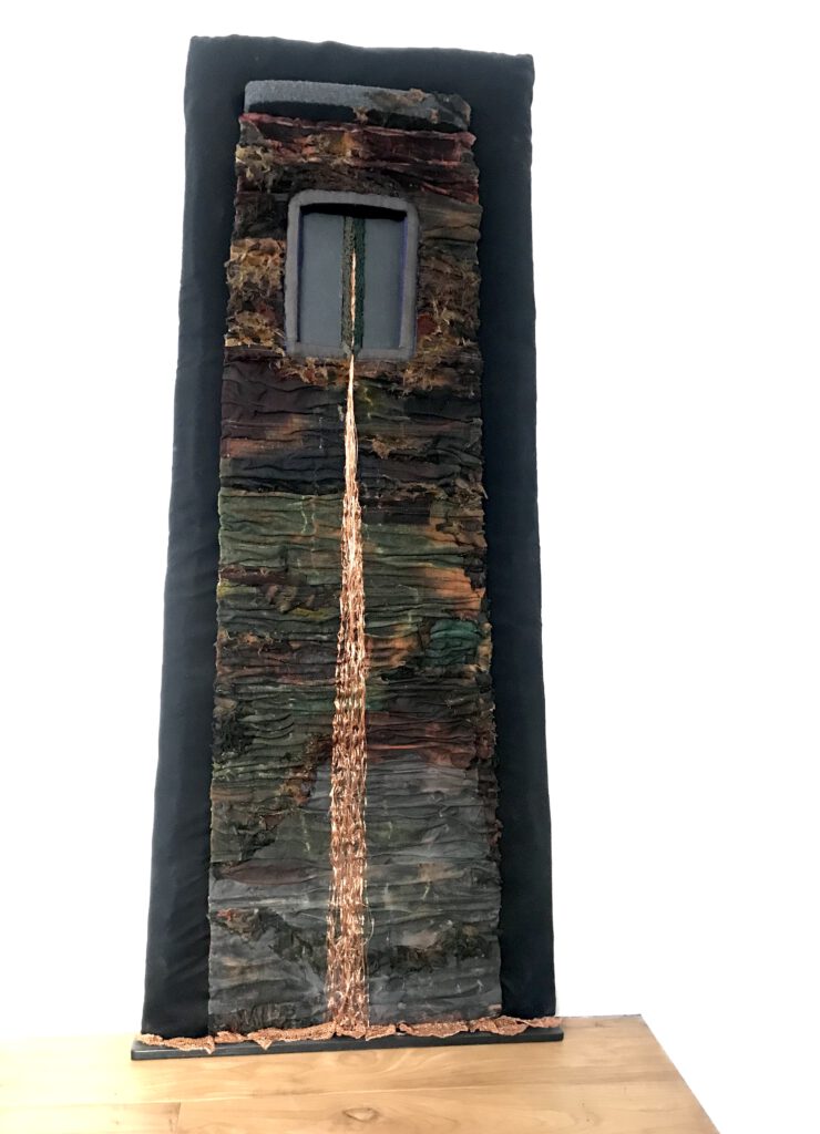 Textiel met koperdraad. Heiligverklaring aan de bron, waar al het leven uit voortvloeit.